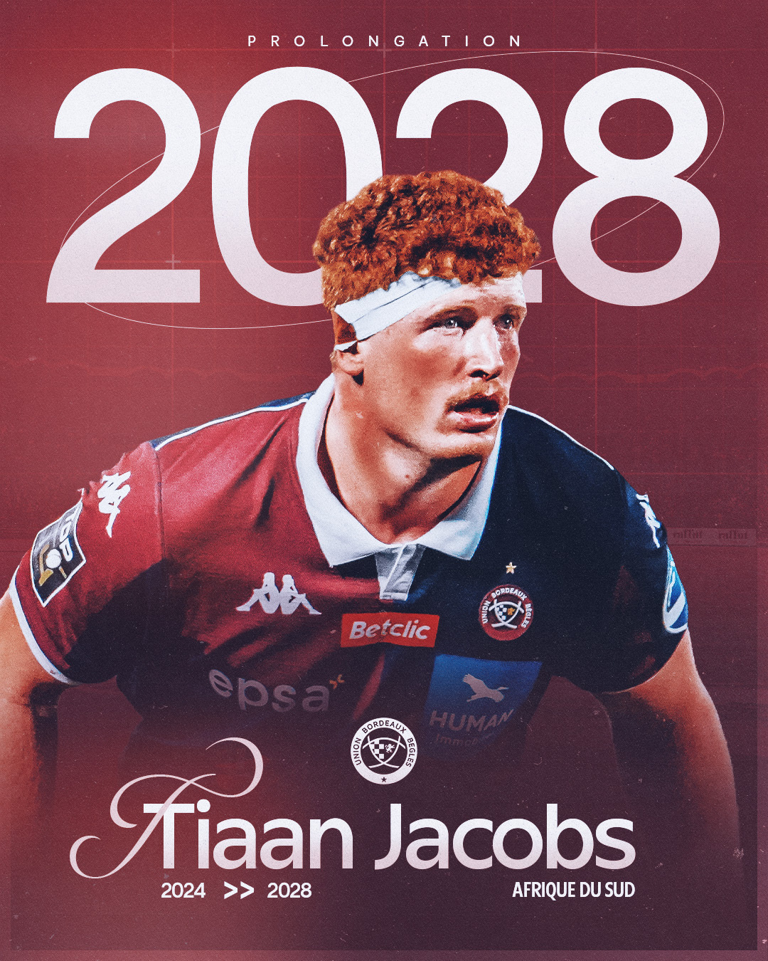 Félicitations Tiaan pour cette prolongation en Bordeaux & Blanc ! On te souhaite le meilleur pour la suite de ta carrière au club.