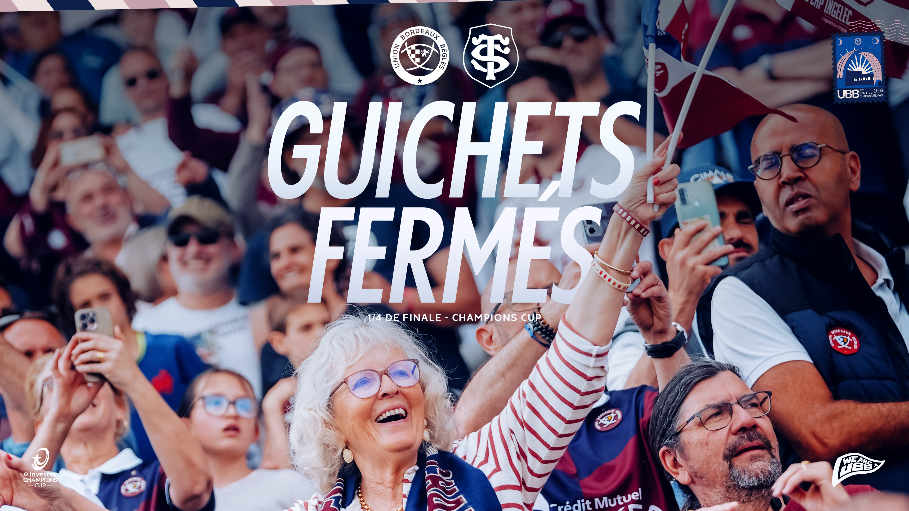 C'est le 31e guichets fermés pour la réception du Stade Toulousain au Stade Chaban Delmas ! Pour ce quart de finale c'est encore 32 000 personnes qui seront prêtes à pousser derrière nos Bordeaux & Blanc.