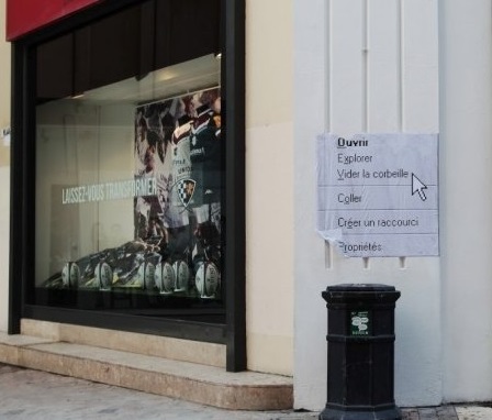 Vous les avez peut-être vues en centre ville de Bordeaux ces derniers jours Elles fleurissent à proximité des poubelles : des affiches avec un message, habituellement informatique, pour inviter les passants à jeter leurs déchets.