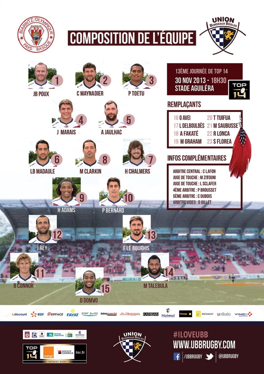 La Compo de l'UBB pour Biarritz