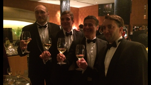 La délégation de l'UBB (de gauche à droite), Olivier Brouzet, Yann Rozes, Laurent Marti et Christophe Chateau (CIVB) étaient à Hong Kong les 27 et 28 mai pour représenter l'UBB Grands Crus à Vinexpo Hong Kong.