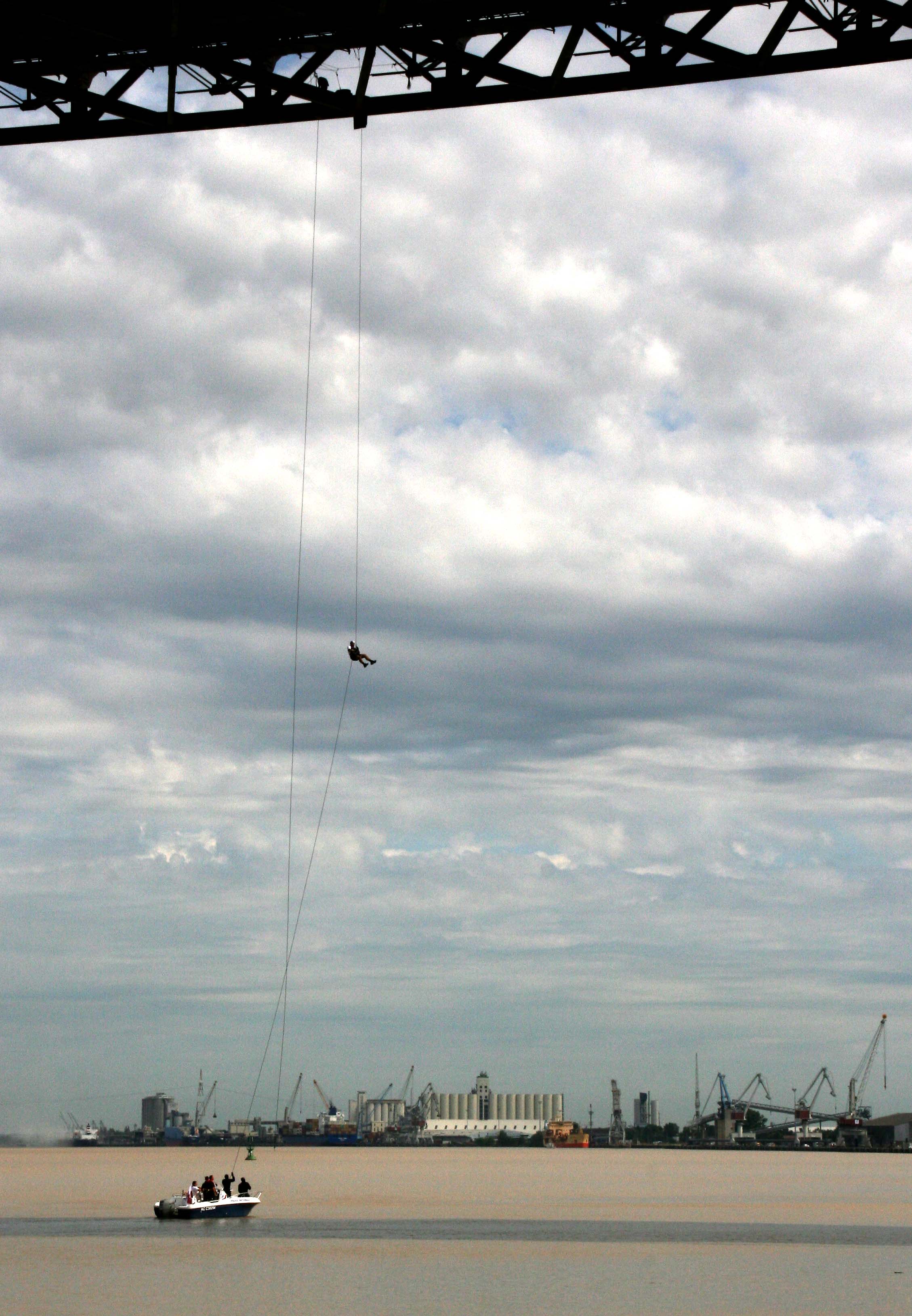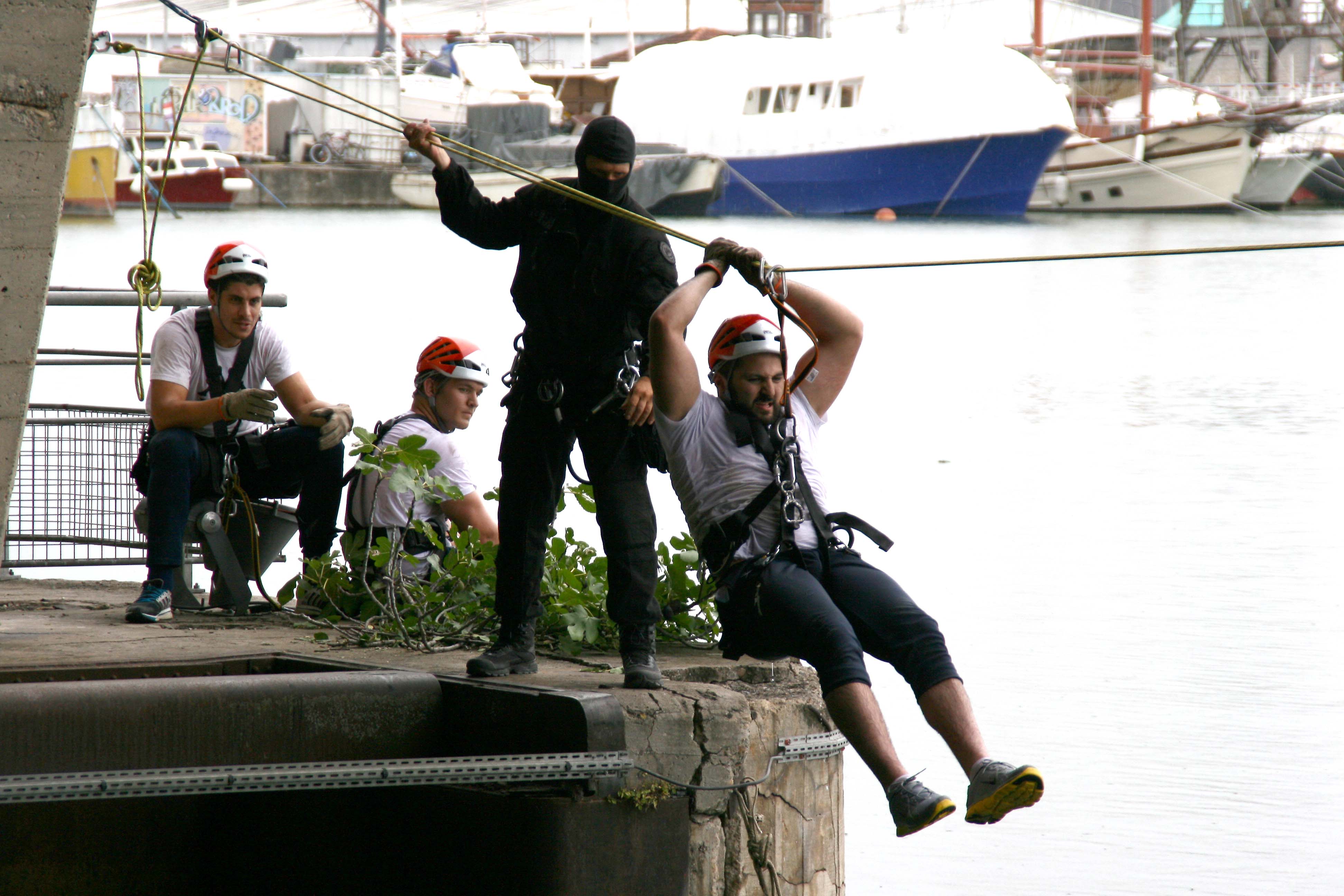 Accueillis à 9h00 dans les entrailles du pont d'Aquitaine par l'antenne du RAID de Bordeaux, un groupe de 9 joueurs a dû réaliser une descente encordée du haut du pont pour atterrir 48 m plus bas dans un bateau de la Police Nationale.
