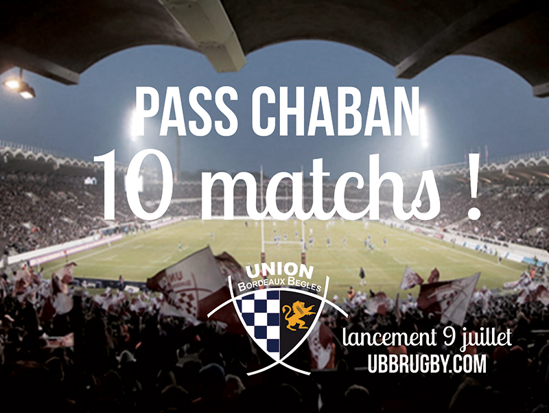 Suite à l'énorme succès rencontré la saison passée, le Pass Chaban sera de retour mercredi 9 juillet ! Ce sésame pour les 10 rendez-vous immanquables de l'UBB cette saison -dont plusieurs auront sans doute lieu à guichets fermés- devrait faire le bonheur de nombreux supporters... Tous les détails et tarifs ce lundi !