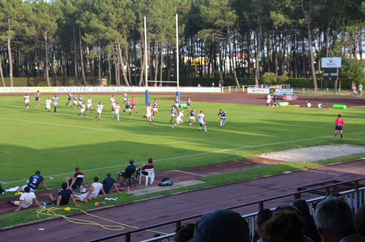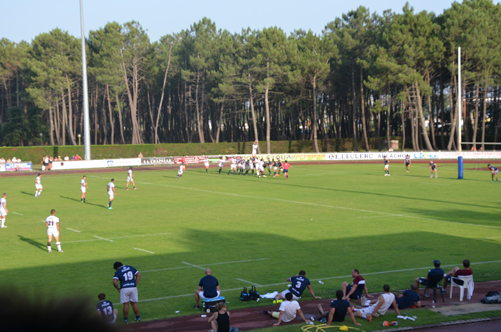Sous un soleil de plomb et dans un cadre magnifique qu'est la plaine des sports et des loisirs Gilbert Moga, enceinte des rugbymen du RCBA (Rugby Club Bassin d'Arcachon), et une foule de supporters, tel était le décors du jour pour les retrouvailles estivales entre l'Union Bordeaux-Bègles et ses plus fidèles supporters. L'occasion pour de nombreux girondins de faire connaissance avec l'UBB version 2014-2015, ses anciens, ses nouveaux et son staff. Mêlant joueurs pros et joueurs espoirs, les deux équipes se sont livrées à une belle opposition, dans laquelle certains ont déjà fait preuve de leur grande forme pour enthousiasmer le public. A l'image d'un Romain Lonca intenable ou d'un Blair Connor virevoltant, les joueurs girondins ont prouvé que la dure préparation qu'ils endurent depuis plusieurs semaines commence à porter ses fruits. De bon augure avant le début d'une longue saison dans laquelle l'Union se sait très attendue.