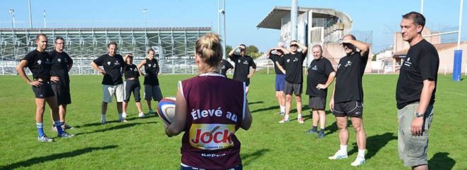 Certains joueurs issus du centre de formation (Marco Tauleigne, Arnaud Feltrin, Thomas Lainault et Xerom Civil) ainsi qu'Olivier Brouzet ont animé avec plaisir ces ateliers rugbystiques.