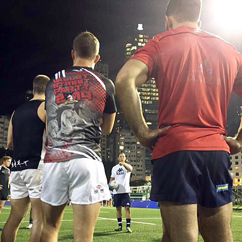 Jeudi 30 octobre : direction les terrains de rugby du Société Générale Valley RFC, l'un des principaux clubs de la région où évolue l'ancien Bordelais, J.B Aldigé, désormais établi à Hong-Kong où il dirige une agence d'évènementiel sportif. Olivier Brouzet et Bruce Reihana, accompagnés de Jack Isaac, ancien entraineur du BOPB et actuel entraineur du club asiatique, dirigent l’entraînement de l’équipe Junior, puis de l’équipe Sénior en prévision de sa prochaine rencontre contre le Natixis HKFC...