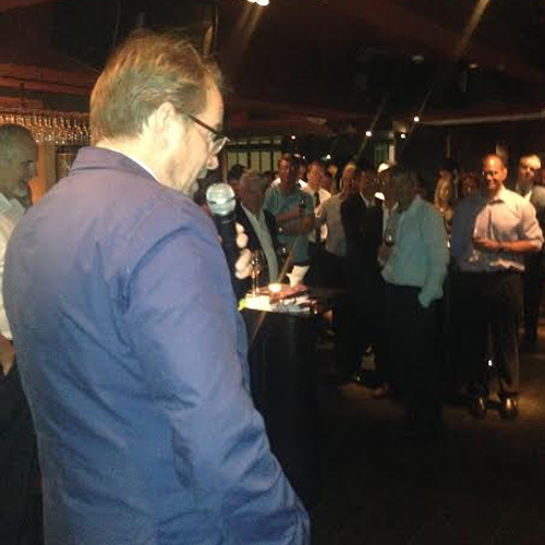 Ci-dessus : Laurent Marti, avec à sa gauche Andrew Riebe, président du Valley RFC, et à sa droite l'heureux acquéreur d'un des lots mis en vente