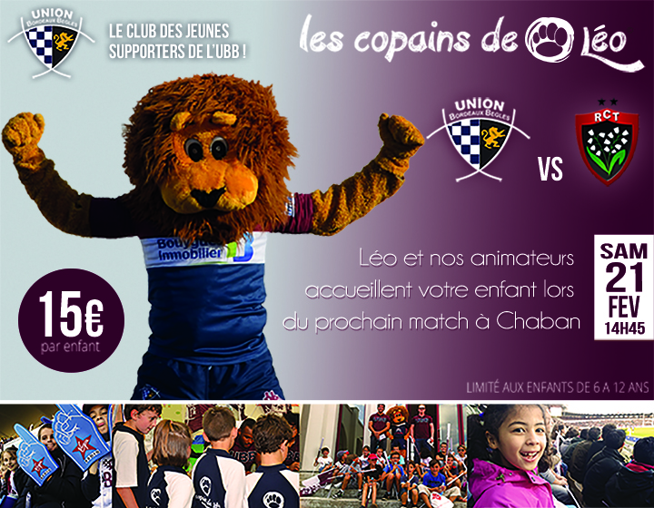 Les inscriptions pour "Les Copains de Léo" en vue du choc chabanesque UBB-RC Toulon, le samedi 21 Février prochain à 14h45 sont ouvertes ! Ne tardez plus pour inscrire votre enfant !