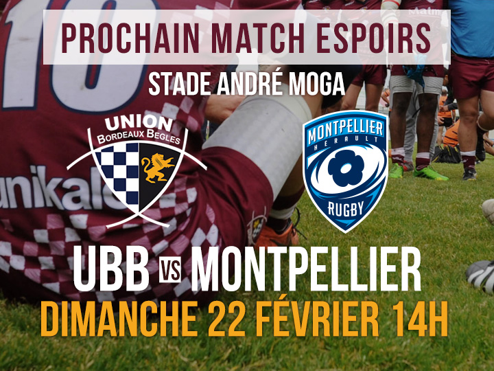 Nos Espoirs reçoivent le MHR ce dimanche, match qui compte pour la 6ème journée de la phase retour du championnat. Actuellement, 3èmes au classement, nos jeunes pousses vont affronter Montpellier, leader du championnat, gros enjeu en perspective ! Pour rappel, nous avions perdu à l'aller 26-9.. Venez nombreux les encourager, ils en auront besoin !