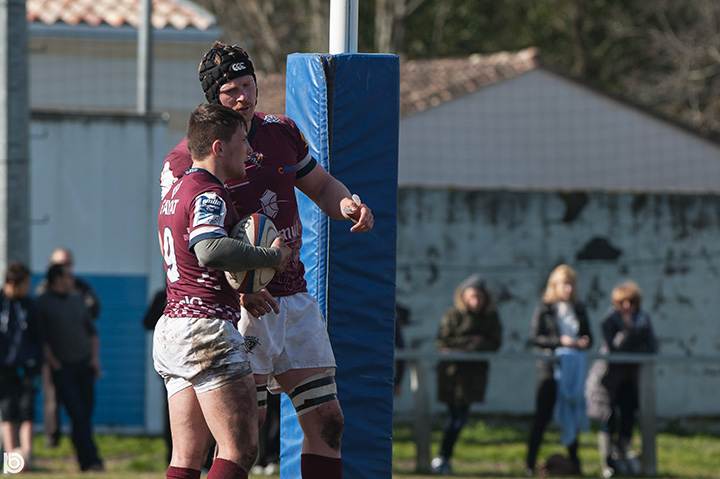 A la 50’, sur une touche longue dans les 22m Palois, le lanceur local lobe son alignement, Thierry Paiva récupère et marque, un essai qui ne sera pas bonifié. On revient au score et on peut espérer.