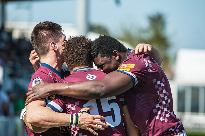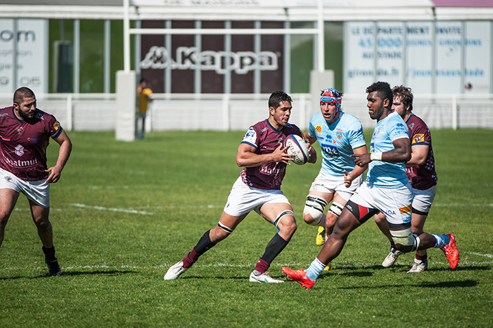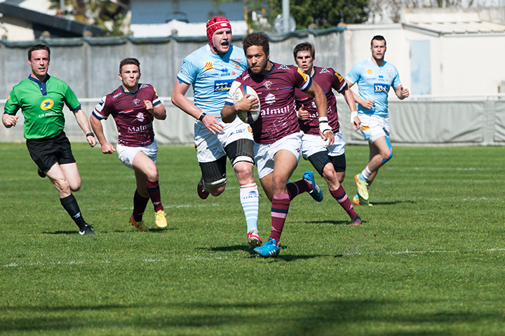 Nos groupés font des misères aux visiteurs, leur Capitaine Lucas Bachelier use d’expédiant, carton blanc, repos 10’, pénalité que Lucas Meret transforme, UBB 10 USAP 3.