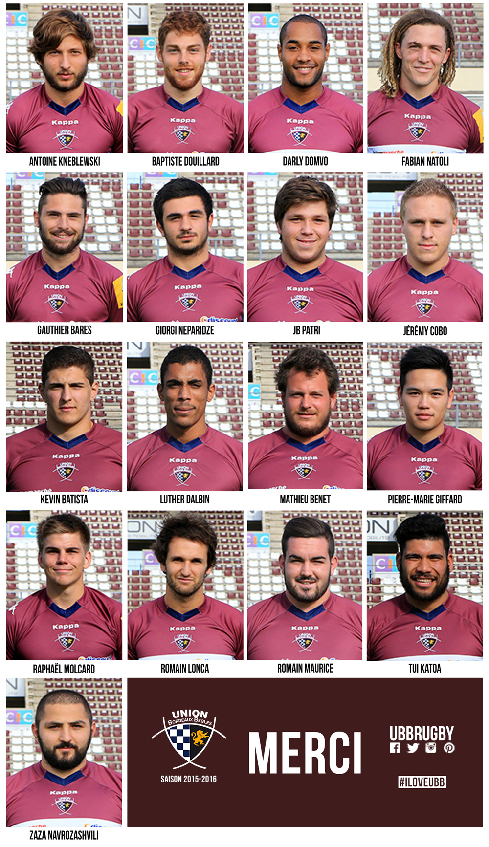 A noter que Darly DOMVO et Romain LONCA quittent l'équipe Espoir... pour rejoindre l'équipe 1ère de l'Union Bordeaux Bègles !