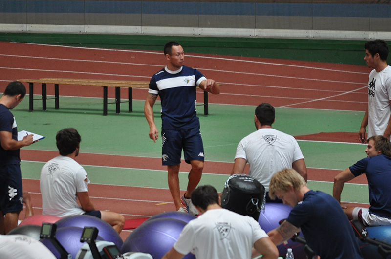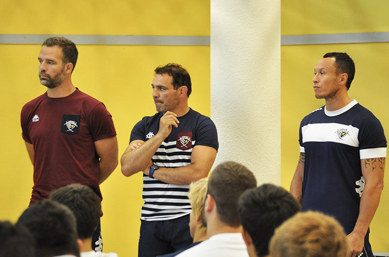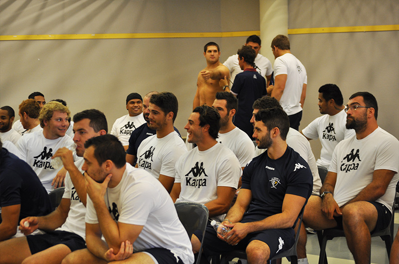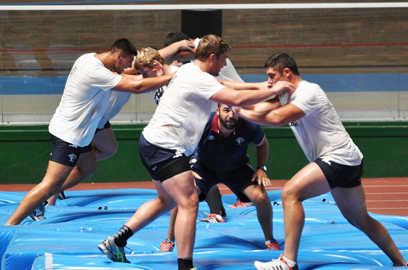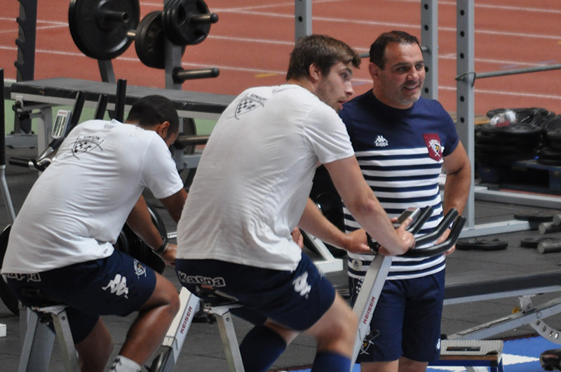 Cette première journée débuta par un mot d'accueil du président Laurent Marti et par la présentation du staff et des nouvelles recrues. Installés au coeur même du Vélodrome de Bordeaux (ils y seront jusqu'au mois d'août), les joueurs ont ensuite enchaîné une éprouvante demi-journée de musculation et de tests physiques... de l'avis même des intéressés : Cétait dur, mais les joueurs s'y sont filés, déclarait Matthew Clarkin à l'issue de l'entraînement. Tout le monde a suivi un programme spécifique pendant ses congés si bien que certains ont même perdu du poids alors que ce n'était pas forcément le cas les années passées. Sans doute par peur de Ludo (Loustau) [rires].