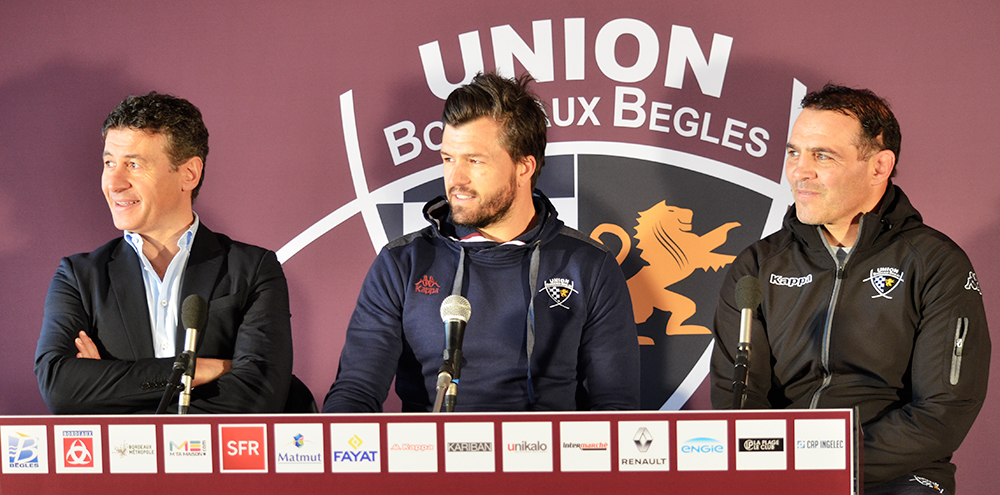 Ce jeudi à 14h, le président de l'UBB Laurent Marti entouré de son manager Raphaël Ibanez, a présenté officiellement aux médias le 3/4 centre vice-champion du monde australien, Adam Ashley Cooper !