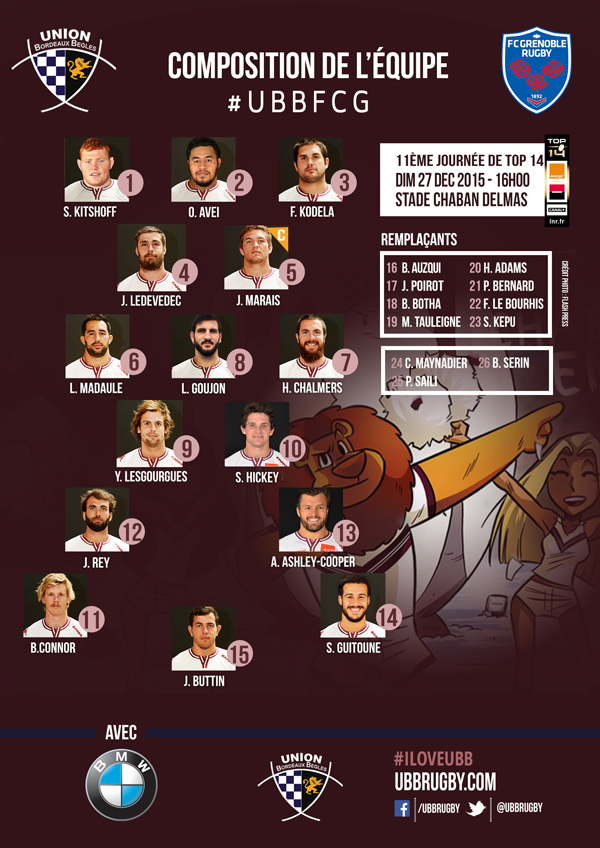 Le stade Chaban Delmas prépare son dernier match de l'année 2015 ! L'UBB vous donne rendez-vous entre demain dimanche 27 décembre à 16h pour la réception de Grenoble, dans l'ambiance festive du "Boxing Day" du Top 14 !
