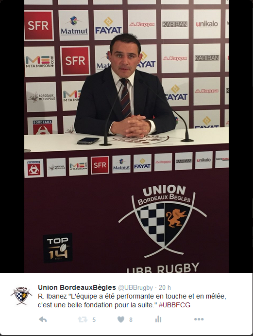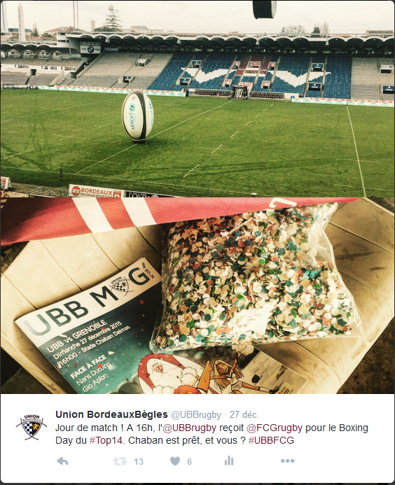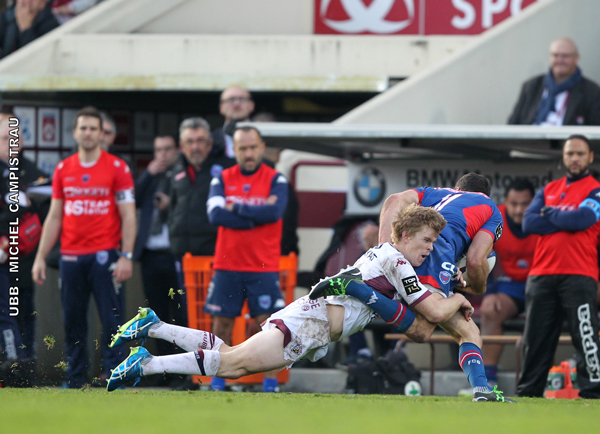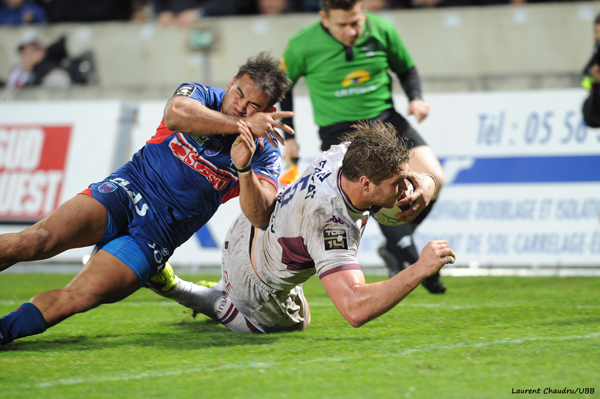 L'UBB a enclenché la marche avant vers les sommets hier après-midi à Chaban Delmas. En effet, l'UBB s'impose et n'en finit plus de proposer un jeu offensif de plus en plus alléchant. Le FC Grenoble en a fait les frais en ce dimanche ensoleillé en encaissant 3 essais par l'intermédiaire de Sofiane Guitoune, Ole Avei, et Jandre Marais. La réduction du score à la dernière minute par Chris Farrell est presque anecdotique bien qu'elle empêche l'UBB de s'imposer avec le point de bonus offensif. Score final : 25-19. Les supporters avaient répondu présent (25 000 personnes), Chaban était en fête et l'ambiance était bouillante tout au long du match pour encourager une équipe qui vient d'enchaîner 3 victoires consécutives toutes compétitions confondues. L'UBB pointe actuellement à la 4ème place du classement du Top 14 à égalité avec Toulon. A noter que les "nouveaux" ont tous été à leur avantage au cours de ce match et notamment l'ouvreur néo-zélandais Simon Hickey auteur d'une prestation 3 étoiles selon le Midi Olympique pour sa première titularisation de la saison !