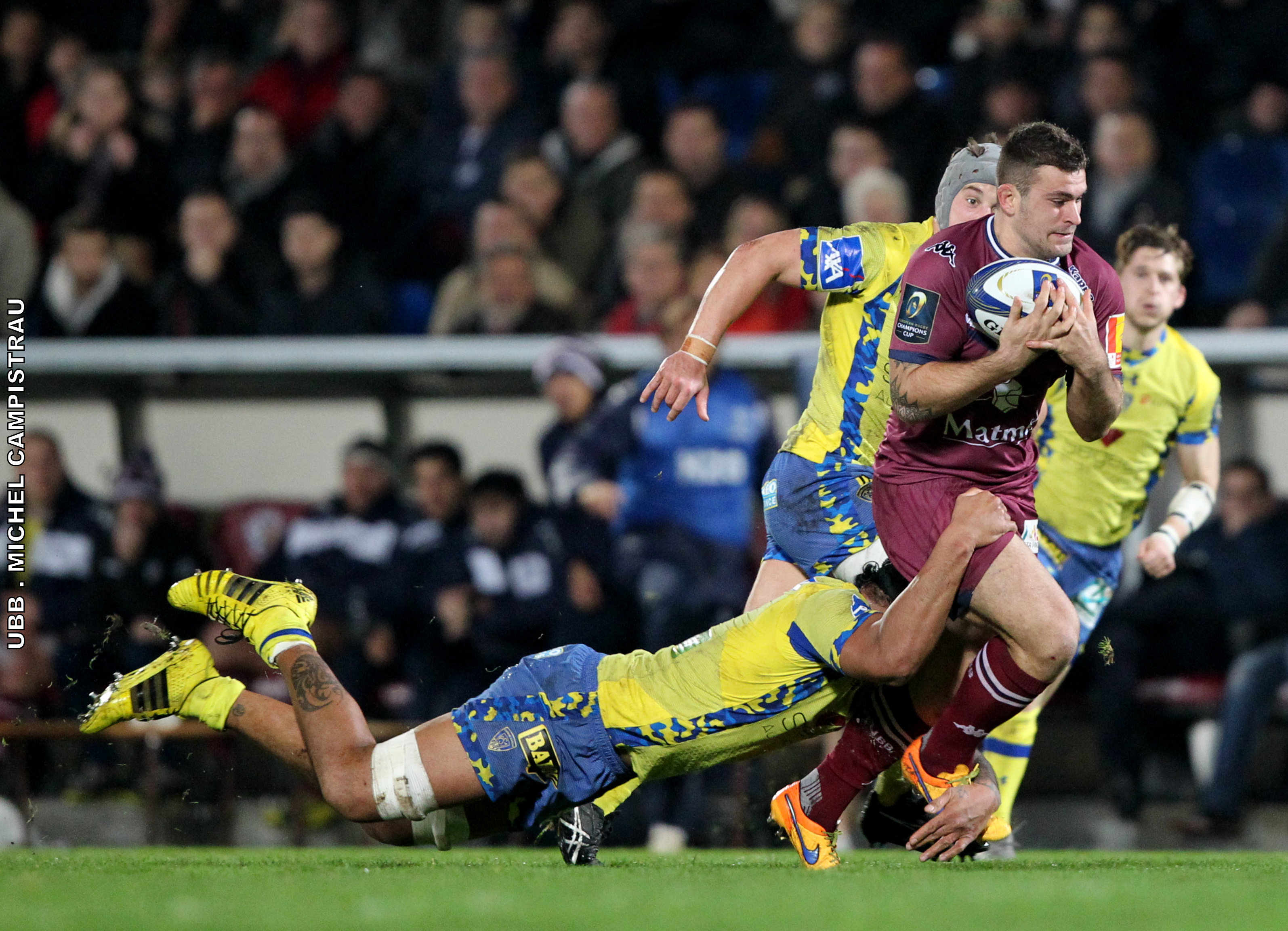 La rencontre UBB-Clermont devait être le 1er match à domicile de l’UBB dans l’histoire de la Champions Cup, le 15 novembre dernier. La rencontre fut reportée au 8 janvier suite aux attentats de Paris. L’UBB remporta sa première européenne à domicile face aux Gallois des Ospreys et voulu enchaîner pour espérer une qualification dans cette poule 2 extrêmement disputée. L’ASM quant à elle, venait avec des ambitions à Chaban pour se rassurer et se donner un peu d’air dans cette Champions Cup avant de se déplacer aux Ospreys. Résultat : un match très disputé dans un stade Chaban bouillant que ni les assauts clermontois, ni le carton rouge infligé à Julien Ledevédec n’aura réussi à refroidir. Au final, une défaite 10-28 face à des jaunards réalistes et très bien organisés. On pense alors légitimement que l’UBB est éliminée de la compétition.