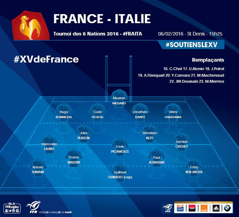 - Samedi 6 février à 15h25 sur France 2 pour le match du XV de France.