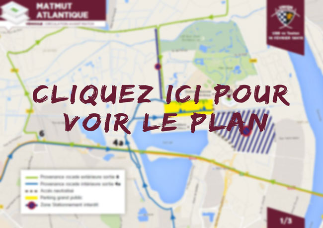 • Si vous souhaitez venir en voiture et pour faciliter votre venue au match UBB / Toulon, vous trouverez dans le lien ci-dessous un plan de circulation qui vous permettra de vous rendre au stade et d’en repartir après la rencontre.