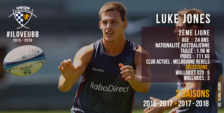 Laurent Marti a officialisé mardi matin la signature du 2ème ligne international australien Luke Jones (24 ans), actuellement joueur des Melbourne Rebels (Super Rugby) depuis 2011. Luke Jones compte 8 capes chez les Wallabies, dont 5 chez les jeunes -20 ans. Il s'engage à l'UBB pour les deux prochaines saisons !