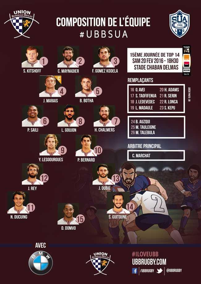 Vous ne pouvez pas venir au stade ? Suivez la rencontre en direct commenté sur notre site ici, et sur Twitter avec le hashtag du match #UBBSUA.