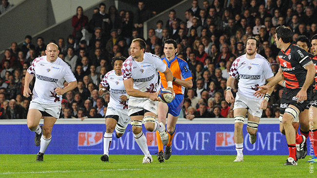 La 6ème journée du Top 14. Un stade Chaban Delmas plein à craquer de 32 000 supporters ! Le Stade Toulousain est en grande forme à ce moment de la saison et l’UBB vient de s’imposer à l’extérieur à Agen. Le match est très disputé comme on pouvait s’y attendre. Les Toulousains marquent le seul essai de la rencontre par l’intermédiaire de l’ailier Vincent Clerc après une percée du centre Florian Fritz. Chaque équipe se voit refuser logiquement un essai après arbitrage vidéo. C'est finalement la botte de Baptiste Serin qui délivre tout le stade Chaban dans les dernières minutes : victoire 12-10 !