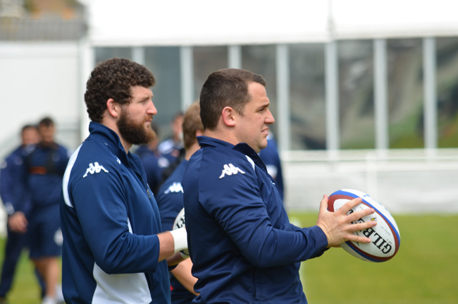 Nos talonneurs Clément Maynadier et Benat Auzqui s'entraînent à lancer en touche.