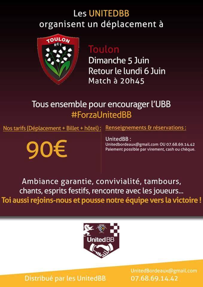 L'UBB est actuellement 7ème avec le même nombre de points que Castres 6ème, la course à la 6ème place s'annonce comme chaque année palpitante ! Après une victoire bonifiée arrachée à la dernière minute grâce à notre capitaine Matthew Clarkin, les joueurs sont à 80 minutes d'une première qualification qui serait historique pour le club. Ils auront besoin de votre soutien dans l'enfer du stade Mayol face à Toulon !