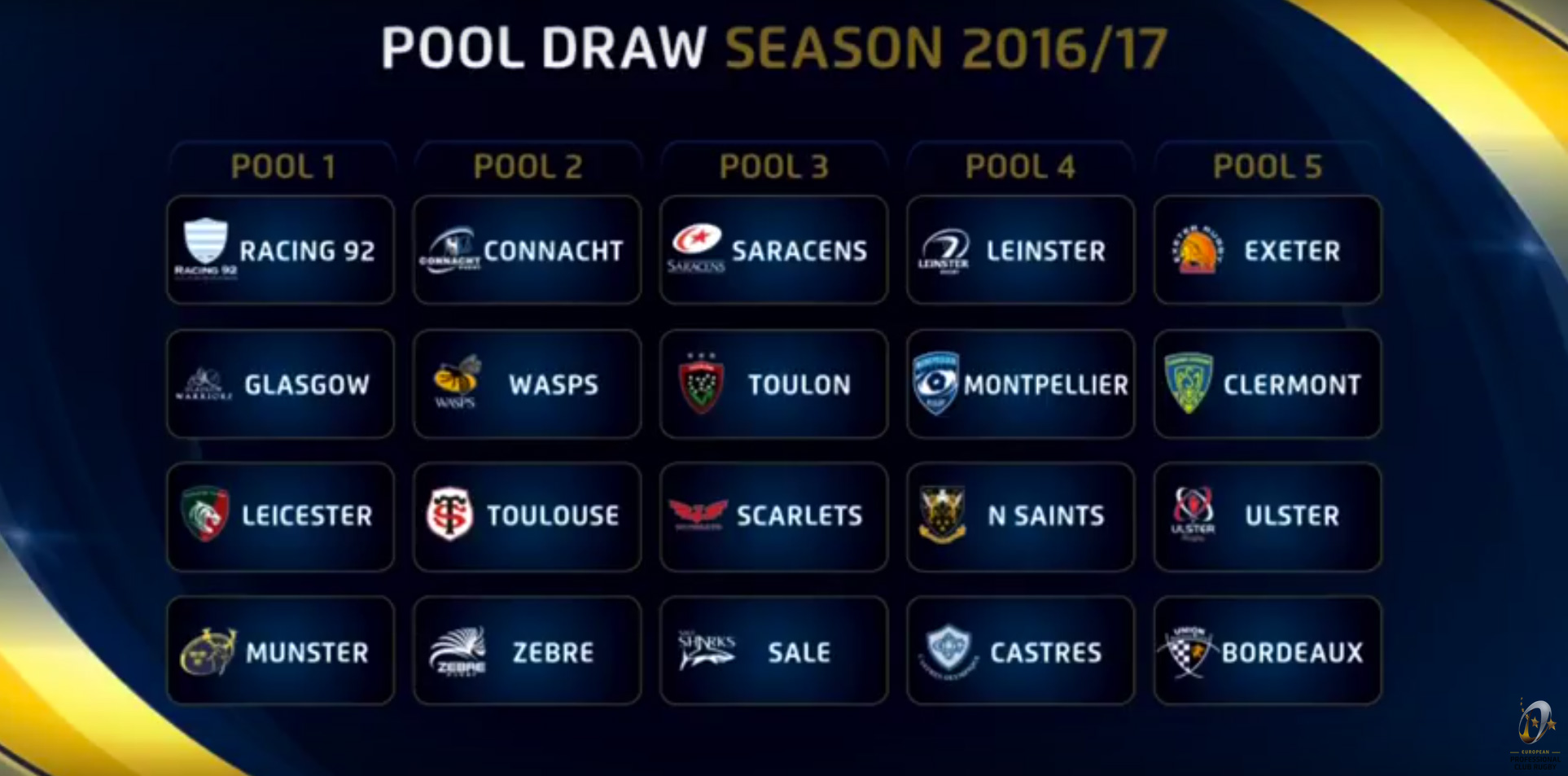 Toutes les poules de la Champions Cup 2016-2017 :