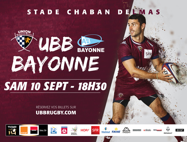 Valable jusqu'au 2 septembre, cette offre pack vous permet de réserver vos places pour ces deux matchs chocs au même tarif (UBB - Bayonne étant un match de Gala).