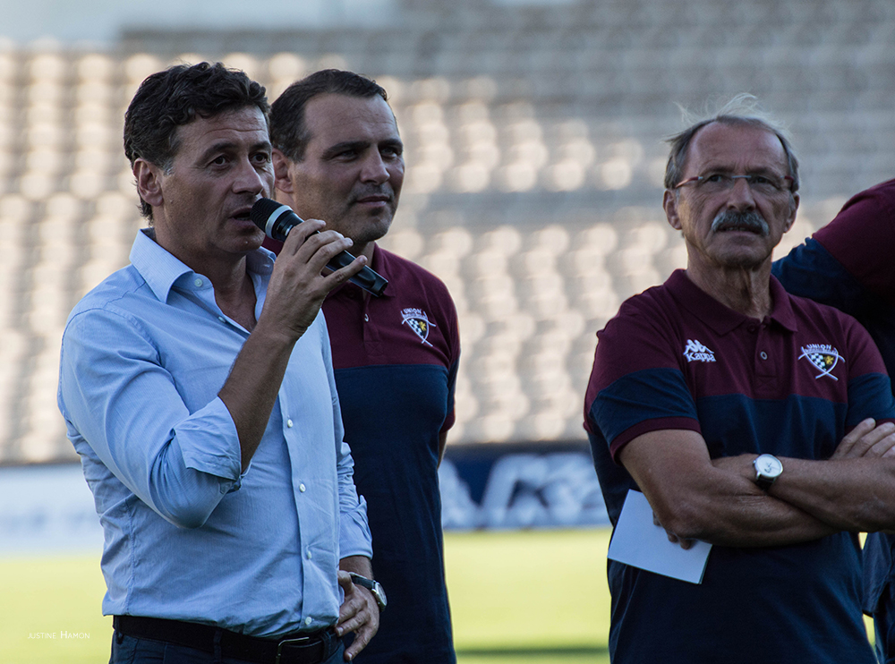 Les abonnés ont ensuite pu s'installer dans les gradins en tribune présidentielle où leur a été faite la présentation de l'effectif 2016-2017. Le manager de l'UBB Raphaël Ibanez a tout d'abord présenté tout son staff pour la saison, et Jacques Brunel et Emile Ntamack ont passé en revue chaque joueur de leur groupe, respectivement avants et arrières.