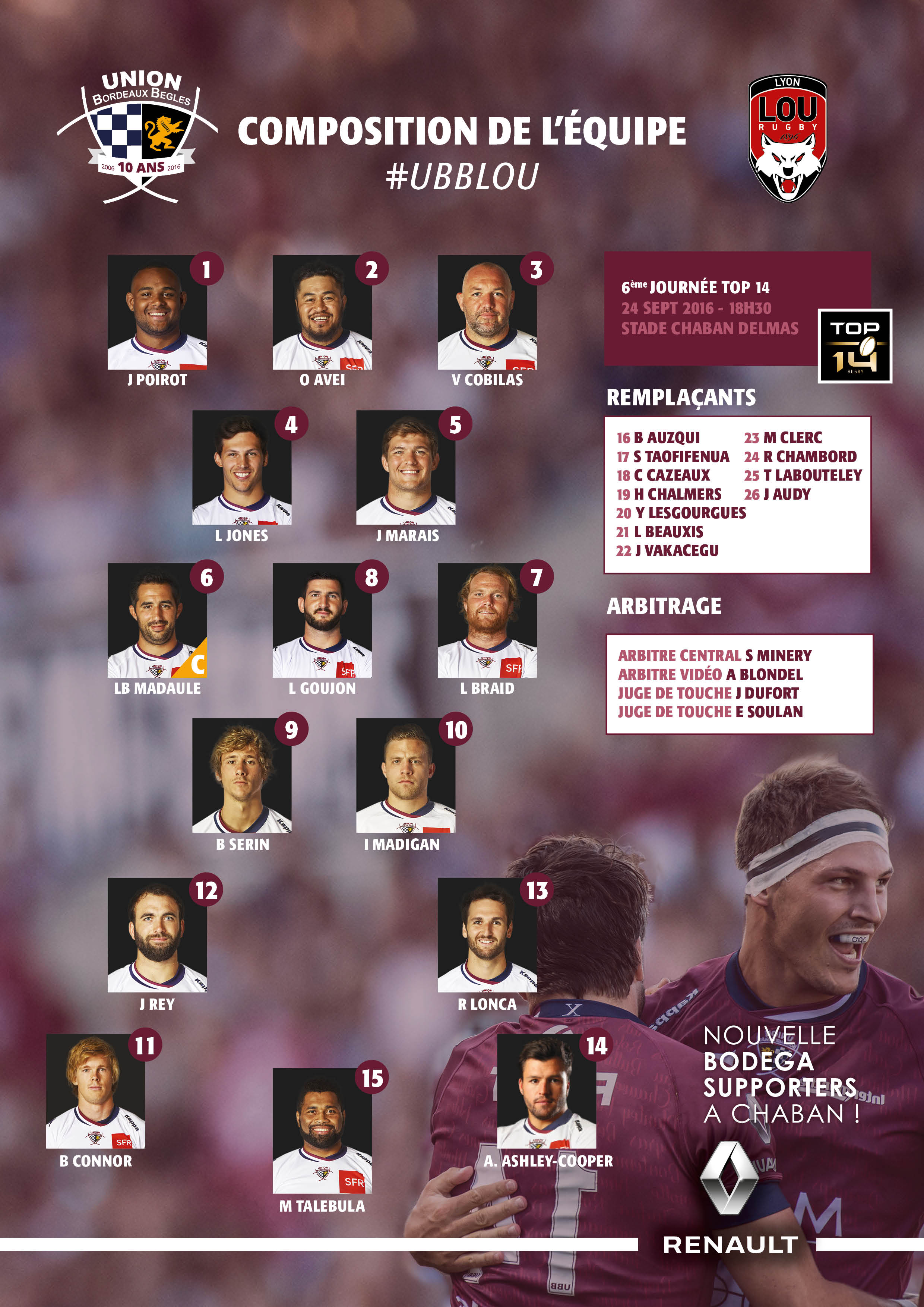 Demain, samedi 24 septembre à 18h30, le promu LOU Rugby vient montrer les crocs à Chaban avec un appétit aiguisé par sa victoire face au Stade Toulousain le week-end dernier... Côté UBB, la victoire est impérative comme le précisait ce matin Baptiste Serin : "Non pas parce qu'il s'agit d'un promu, mais parce que nous jouons à domicile, à Chaban devant notre public !".