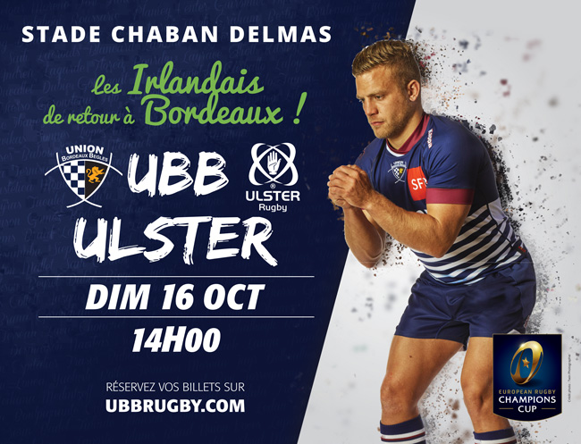 Dimanche 16 octobre l'UBB accueillera les Irlandais d'Ulster Rugby à 14h au stade Chaban Delmas pour le compte de la 1ère journée de l'European Champions Cup !