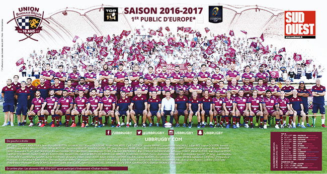 Comme chaque saison l'Union Bordeaux Bègles et Sud Ouest vous offrent le poster officiel de la saison 2016-2017 !