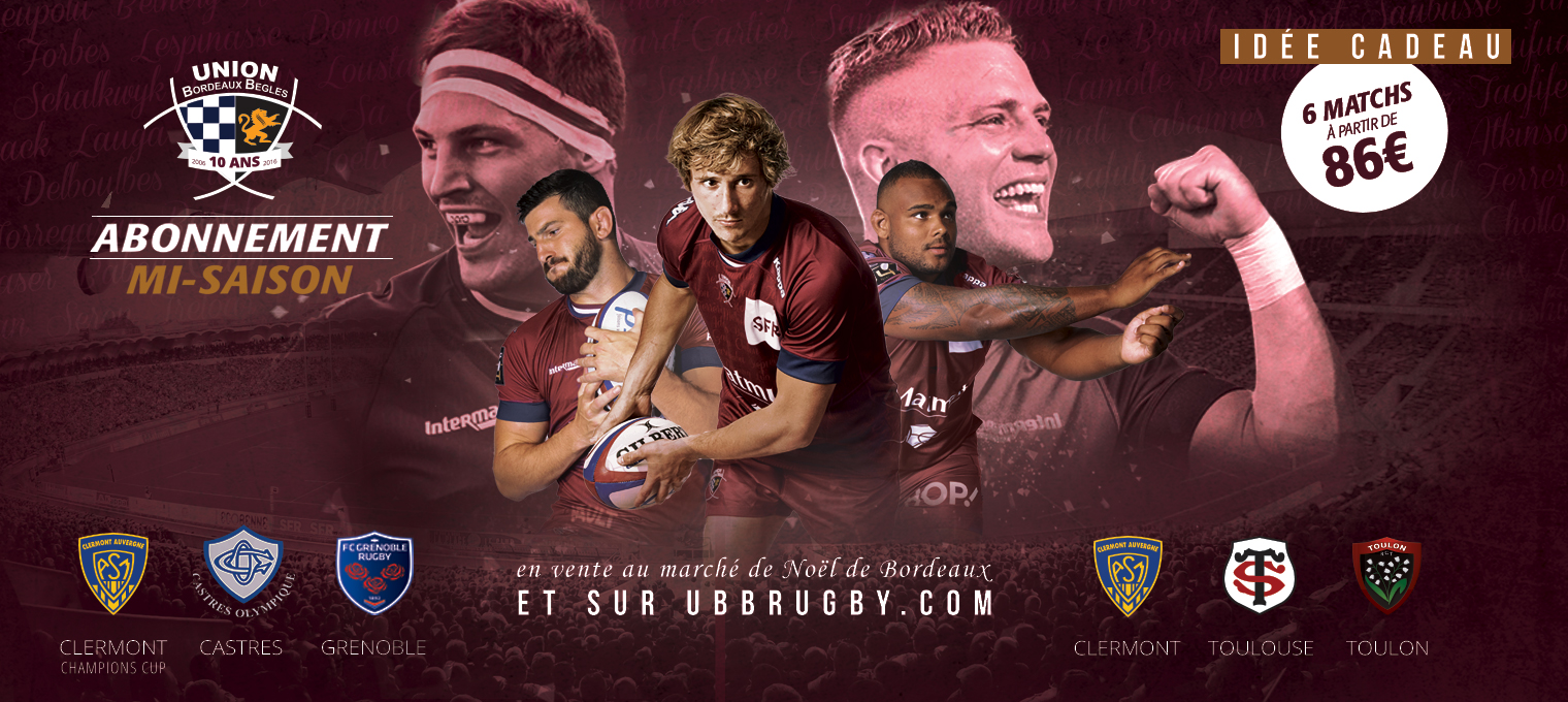 - au chalet de l'UBB au marché de Noël de Bordeaux, du vendredi 25 novembre au samedi 24 décembre