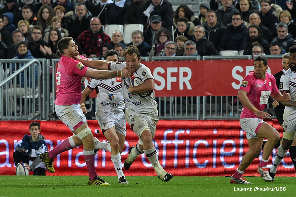 Le 5 novembre 2016, l’UBB reçoit le Stade Français Paris à Chaban Delmas. Notre équipe est très vite menée au score dans cette rencontre, après un essai dès l’entame d’Hugo Bonneval. Mais la réaction des hommes de Raphaêl Ibanez arrive très vite. 3 essais inscrits en première période. Score à la mi-temps : UBB 27 – 6 Stade Français. Le Stade Français inscrit deux essais coup sur coup en début de seconde période. L’UBB n’a alors plus que 8 points d’avance. Mais après un drop et un essai transformé, l’UBB reprend le large et s’impose 37 à 19.
