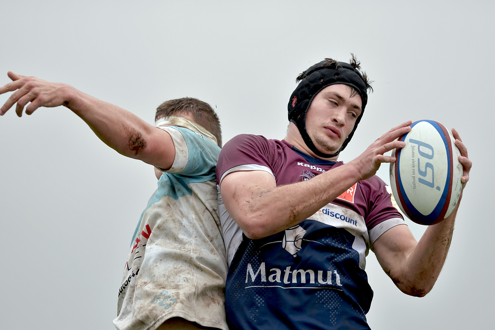 Le jeu reste compliqué, confus, distribution de pénalités de part et d’autre. Les contacts sont rudes. Après un plaquage dangereux, Peyo Muscarditz inscrit les premiers points pour l’Aviron.