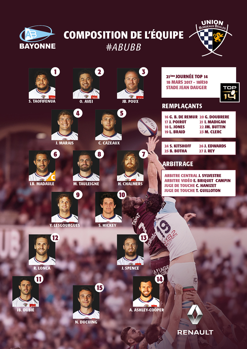 — Aviron Bayonnais (@avironrugbypro) 17 mars 2017