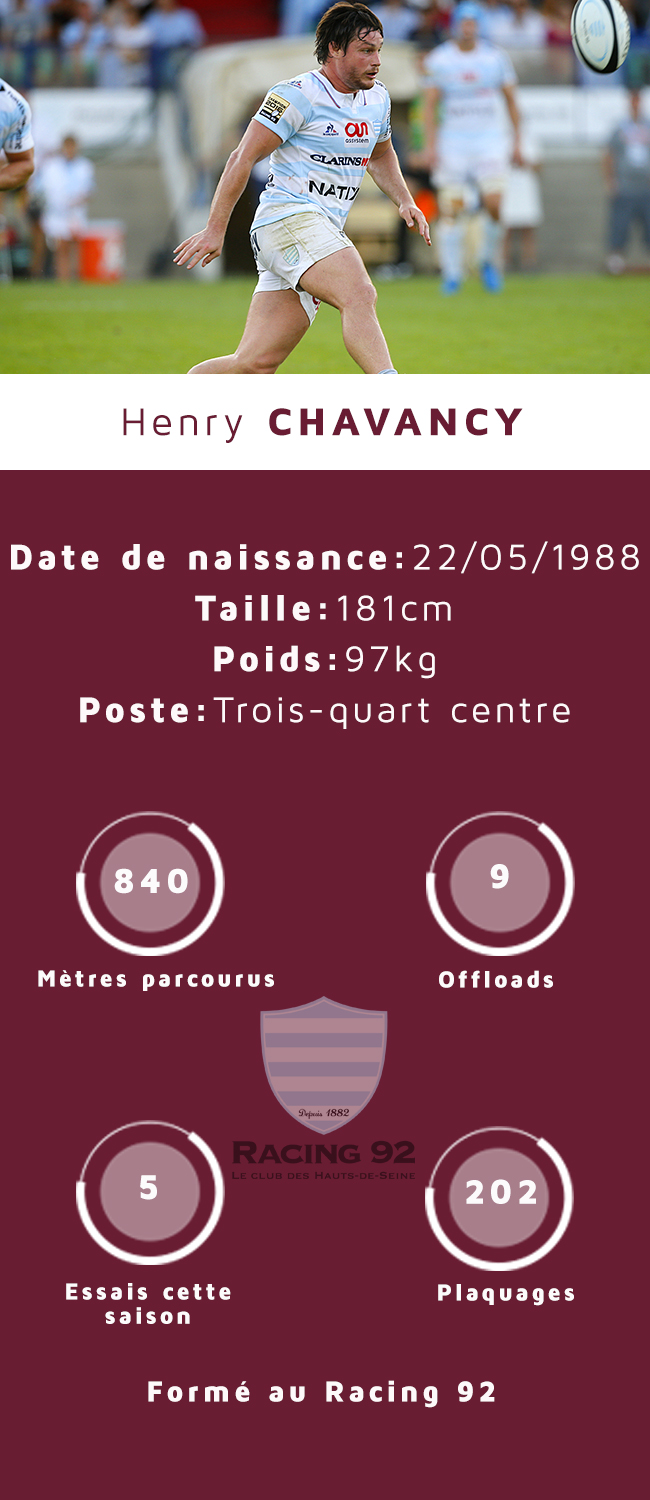 Les joueurs "galactiques" ne manquent pas dans l'effectif francilien, sacré champion de France il y a un peu moins d'un an dans l'enceinte du légendaire Nou Camp de Barcelone. Si, de part son standing, la saison du Racing peut sembler en demi-teinte, notamment à cause de ses difficultés à s'imposer à l'extérieur, l'équipe de Jacky Lorenzetti est redoutable à domicile. Samedi soir, le duo Travers/Labit demandera à ses joueurs de se transcender dans ce qui devrait être le dernier match de l'histoire du Racing 92 à Colombes, puisque les Racingmen évolueront la saison prochaine dans la flambante U Arena de Nanterre. Qui de mieux pour incarner ce supplément d'âme attendu qu'un joueur historique et pur produit du club, le trois-quart centre Henri Chavancy.