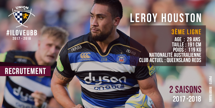 Le troisième ligne australien Leroy Houston, 29 ans, a signé pour deux saisons à l'UBB.