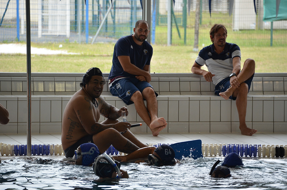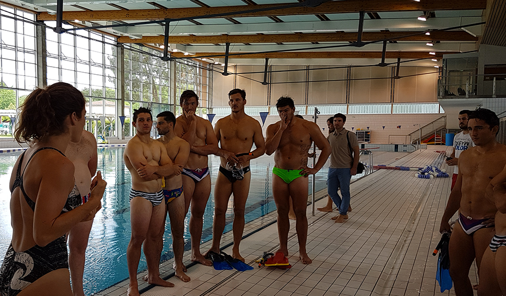 Poursuite de la préparation estivale ce lundi avec la même recherche d'alternance et de complémentarité dans les exercices ciblés par le staff. Ce lundi, nos joueurs avaient rendez-vous à la piscine olympique de Villenave d'Ornon, à la découverte d'une discipline montante : le rugby subaquatique.