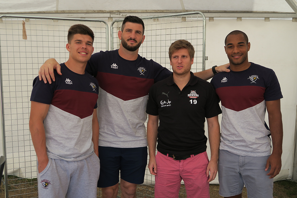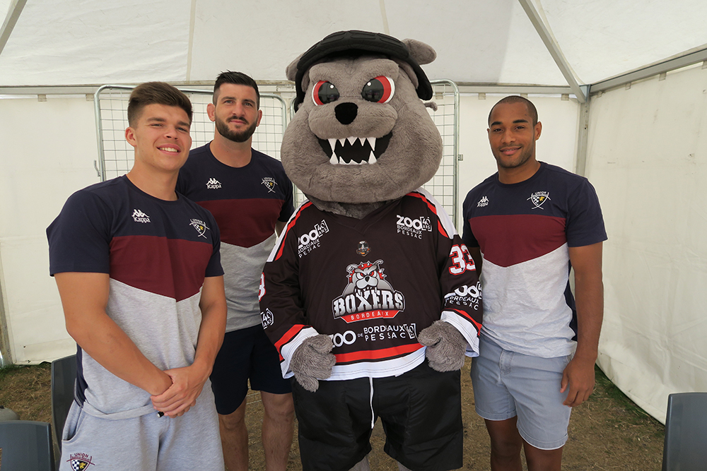 Hier les joueurs étaient entourés de Michel Andrieux (médaillé d'or d'Aviron aux Jeux Olympiques de Sydney), Vincent Cadren (attaquant des Boxers) et sa mascotte : Boxy !