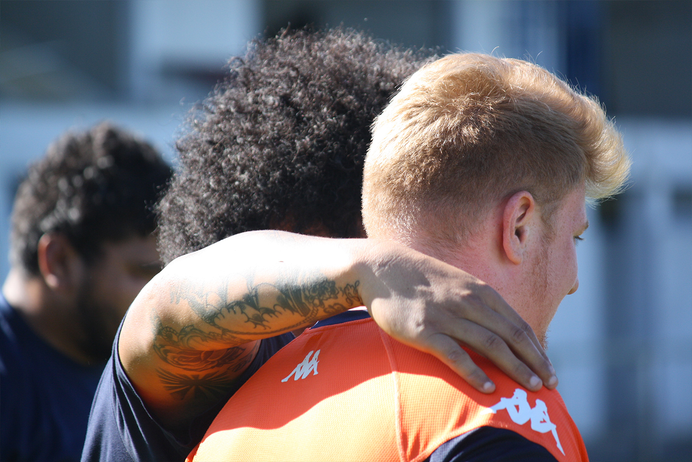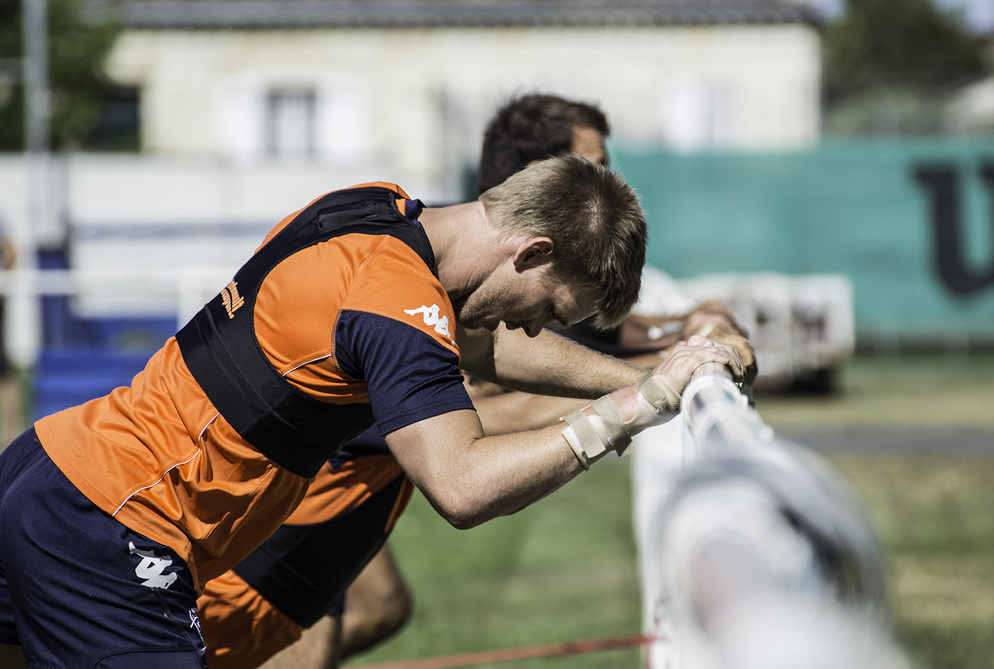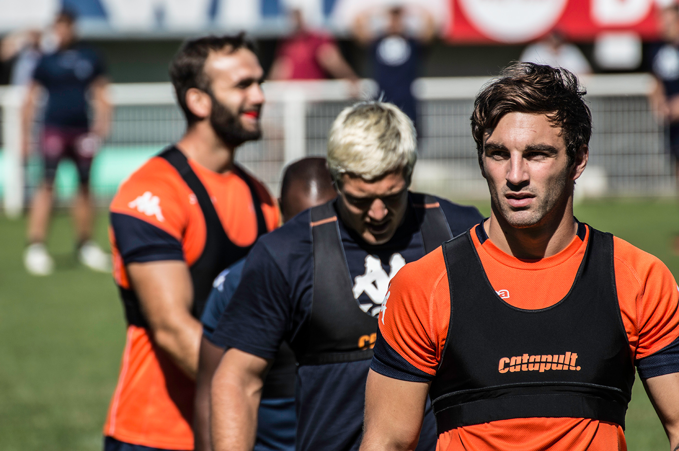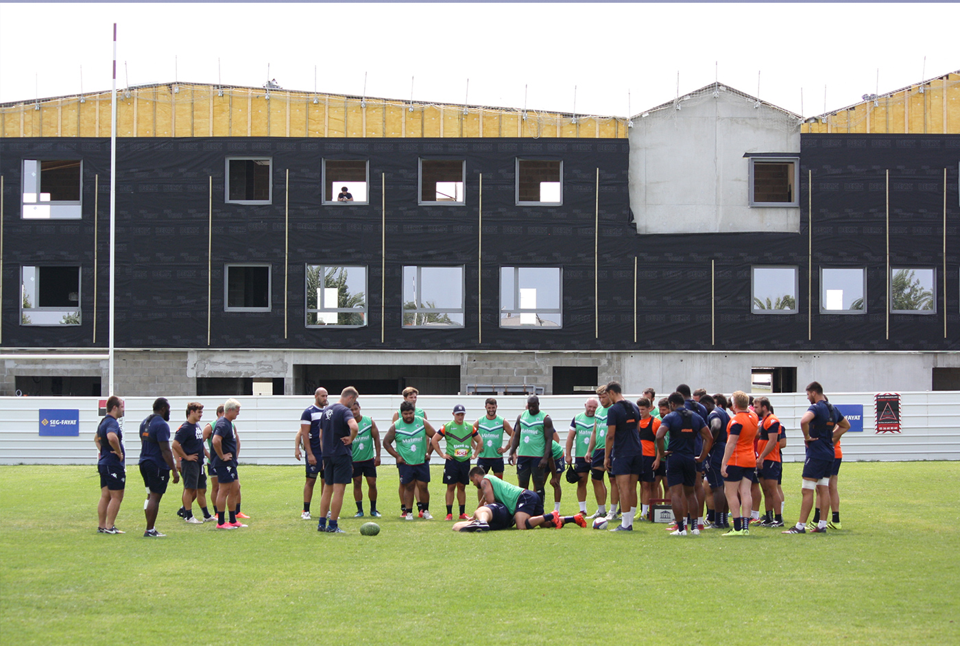 Un chaud début de semaine attendait les joueurs du quatuor Brunel, Teague, Davidson et Worsley, dans la dernière ligne droite avant le démarrage du championnat ce samedi à Chaban. Exercices avec ou sans ballon, mêlées, rugby collectif sur la pelouse de Moga, au fond de laquelle le futur siège et centre d'entraînement du club peaufine lui aussi sa silhouette !