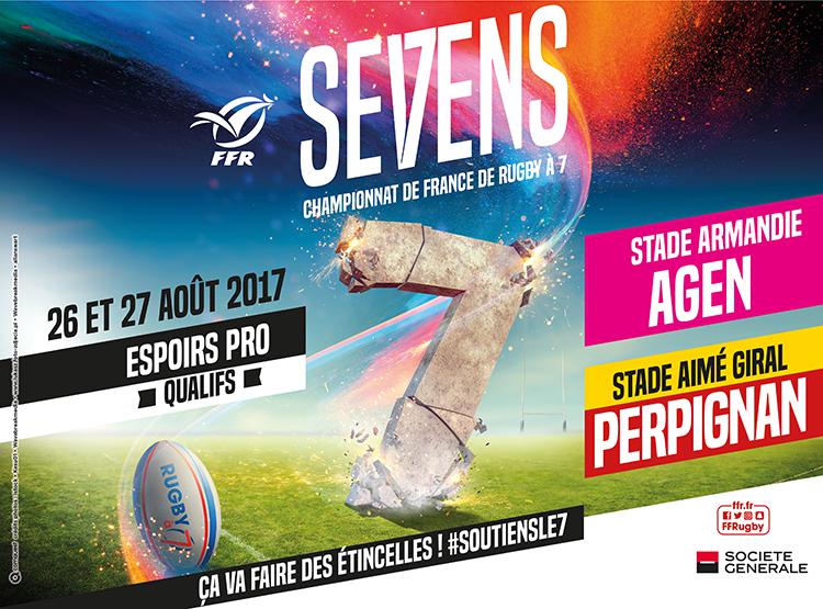 La phase de qualification est organisée en 2 tournois (Agen et Perpignan) sur lesquels sont réparties les 32 équipes (espoirs de Top 14, Pro D2 + 2 équipes invitées ayant participé au Circuit Elite Sevens 2017).