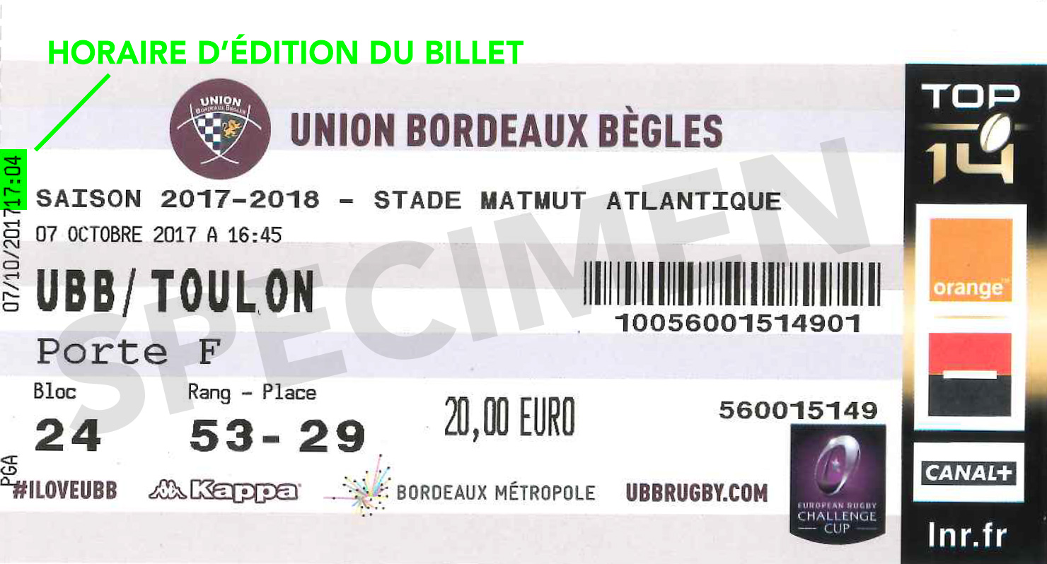 Nous invitons les supporters concernés à envoyer par email une photo de leur(s) billet(s) à l'adresse suivante : billetterie@ubbrugby.com