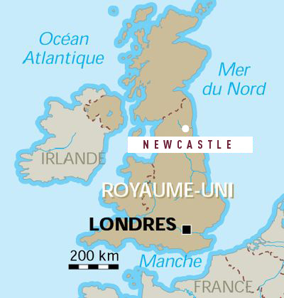 La ville de Newcastle est située au Nord-Est de l'Angleterre sur les bords du fleuve Tyne. Elle est le chef-lieu du conté de Tyne and Wear. Un peu plus grande que Bordeaux intra-muros, elle regroupe 374.217 habitants (246 586 pour Bordeaux).