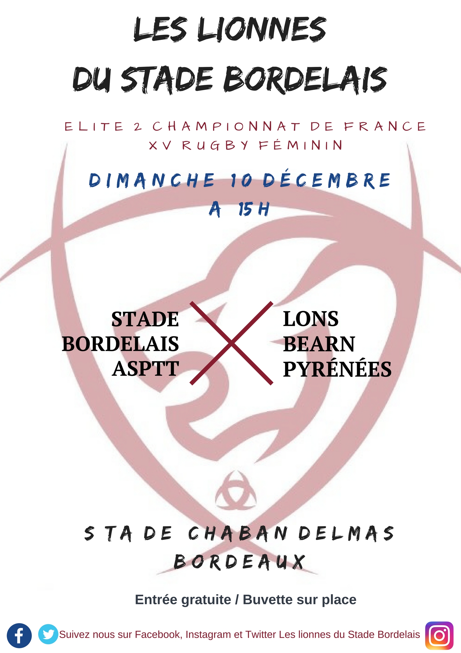 Le même jour, l'équipe première des lionnes défiera quand à elle Lons Bearn Pyrénées au stade Chaban Delmas à partir de 15h (entrée gratuite).