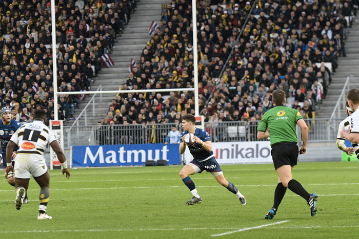 L'Union Bordeaux-Bègles s'impose 29-19 devant le leader La Rochelle ! Énorme succès de l'UBB pourtant réduit à 14 à l'heure de jeu après le carton rouge de Jean-Baptiste Dubié. Un succès validé grâce à des essais de Geoffrey Cros et Peni Ravai et à la botte de Matthieu Jalibert. La fête était au rendez-vous devant pas moins de 36 000 spectateurs qui ont fait le déplacement pour ce match peu avant Noël.