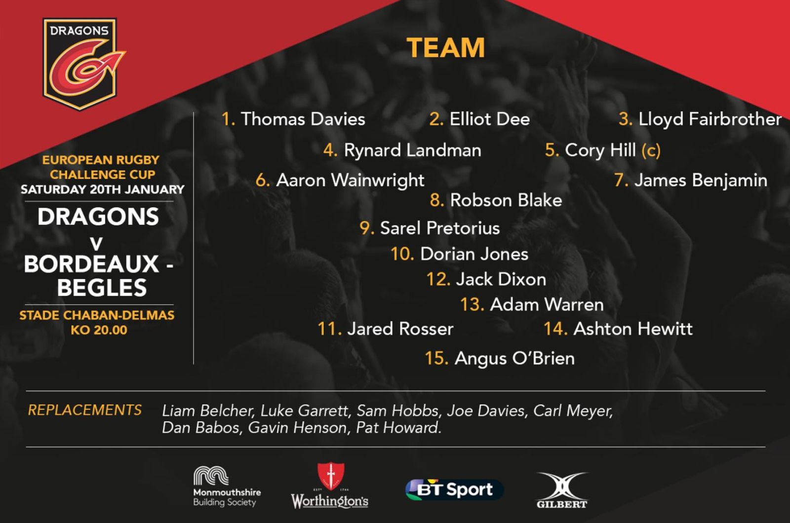 Ce samedi 13 Janvier, l'UBB reçoit les Dragons de Newport au stade Chaban Delmas pour le compte de la 5ème journée de Challenge Cup. Coup d'envoi 21h.
