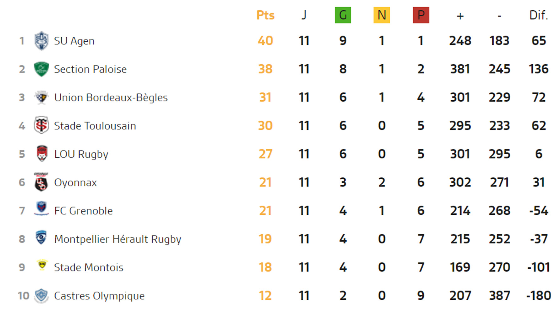 L’entame de la 2ème mi-temps est à l’image de la première, avec trop de points de pris qui les handicapent. Ils parviennent une nouvelle fois à réagir mais malheureusement ne réussissent pas à maîtriser la dernière balle de match qui nous les font perdre de 4 points. Coup de sifflet final, score : 34 à 30. L'UBB conserve tout de même la 3ème place du championnat.